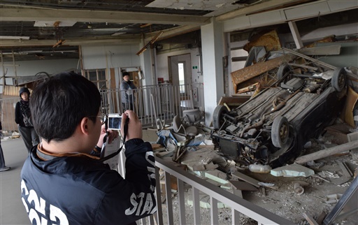 京都市の京都産業大3年吉本俊正さん(22)は、10日に東京であった就職活動の合間に訪れた。被災地訪問は初めてという吉本さんは「写真や映像では見ていたが、実際に津波の被害を目の当たりにすると感じ方が全然違う。津波の脅威を再確認した」と話した。